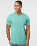 LAT Mens 4.5 Ounce Modern Fit Fine Jersey T-Shirt. Fit: Adult Unisex - True to Size. Ribbed collar. Taped shoulder-to-shoulder. 4.5 ounce 100% combed ringspun cotton fine jersey (Granite Heather is 60/40 Heather is 93/7 combed ringspun cotton/polyester). White is sewn with 100% cotton thread. Double needle hem sleeves and bottom. Side seam construction. EasyTear label.
